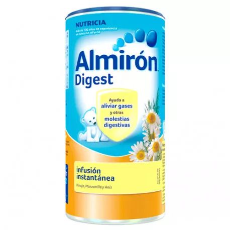 Almirón Digest es una infusión a base de plantas ideal para aligerar los cólicos en los bebés, así como para favorecer el tránsito intestinal, compuesto por manzanilla, anís e hinojo.