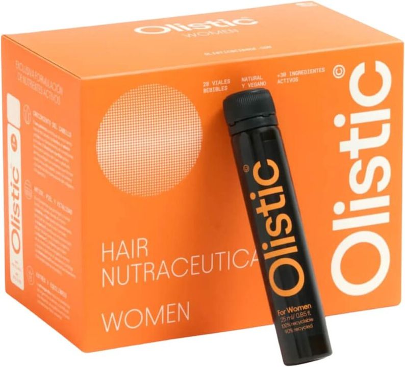 Olistic Women es un complemento alimenticio bebible diseñado para fortalecer, nutrir y combatir la caída del cabello femenino. Cada caja incluye 28 dosis de 25 ml cada vial.